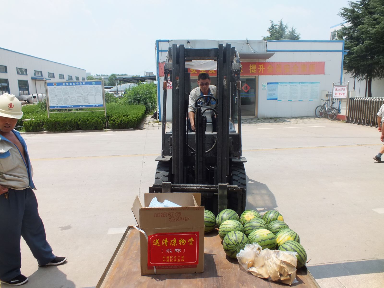 “夏送清涼”慰問活動將關(guān)懷送至公司每一位員工,讓我們大家都深切感受到了東港區(qū)總工會和東港區(qū)安監(jiān)局領(lǐng)導(dǎo)送來的溫暖。另外,公司也提醒所有員工,要做好對炎熱天氣的防范工作,加強(qiáng)身體素質(zhì)和自我保護(hù)意識,安全度過炎炎夏日。