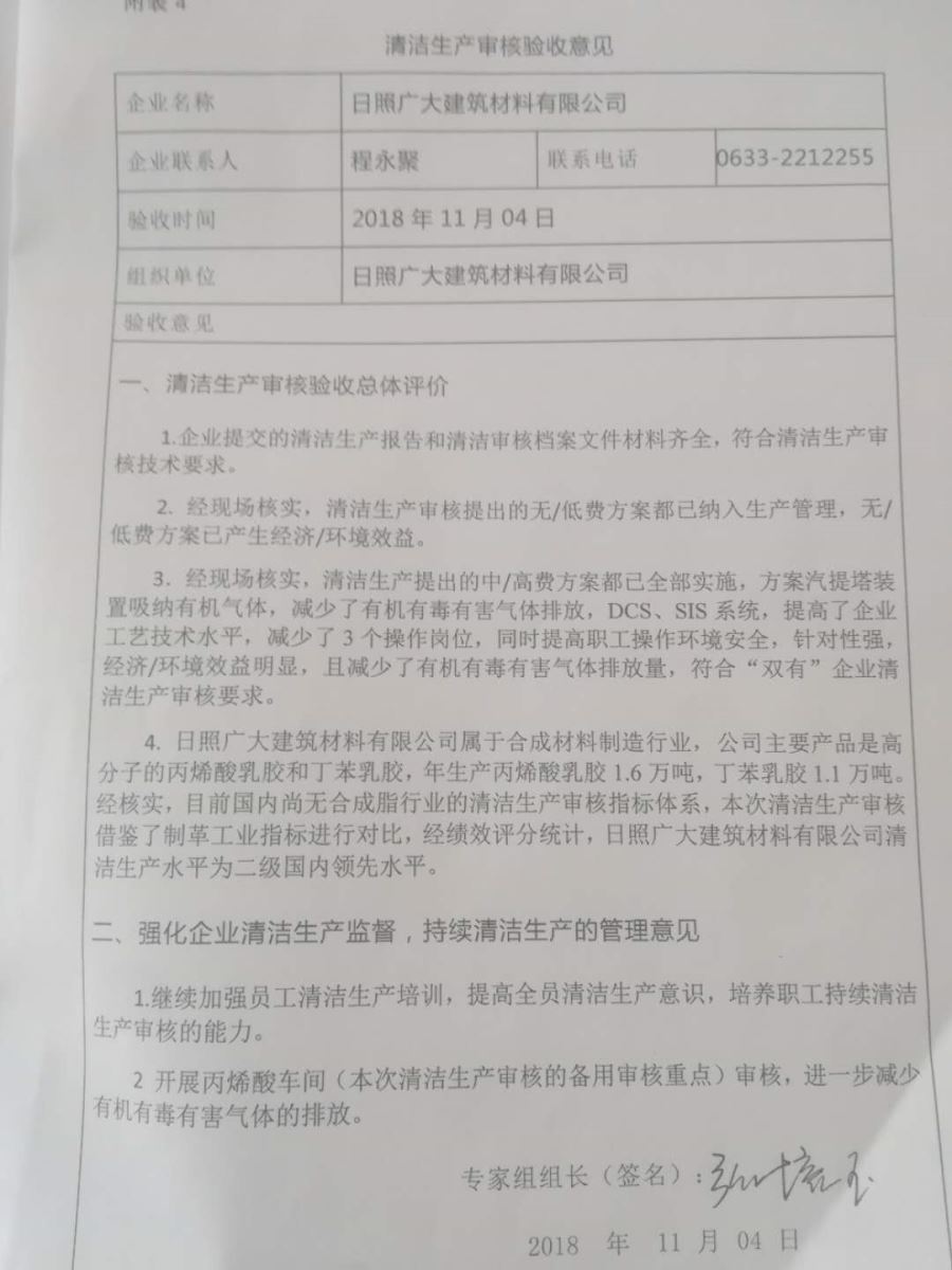 日照廣大建筑材料有限公司,位于風(fēng)景秀麗的海濱城市山東日照,成立于1988年,是專業(yè)生產(chǎn)高分子化工產(chǎn)品,集科研開發(fā)、生產(chǎn)經(jīng)營(yíng)為一體的化工企業(yè),主要產(chǎn)品為丙烯酸脂類乳液和丁苯膠乳。是國(guó)內(nèi)目前江北同行業(yè)產(chǎn)銷量最大企業(yè)之一。