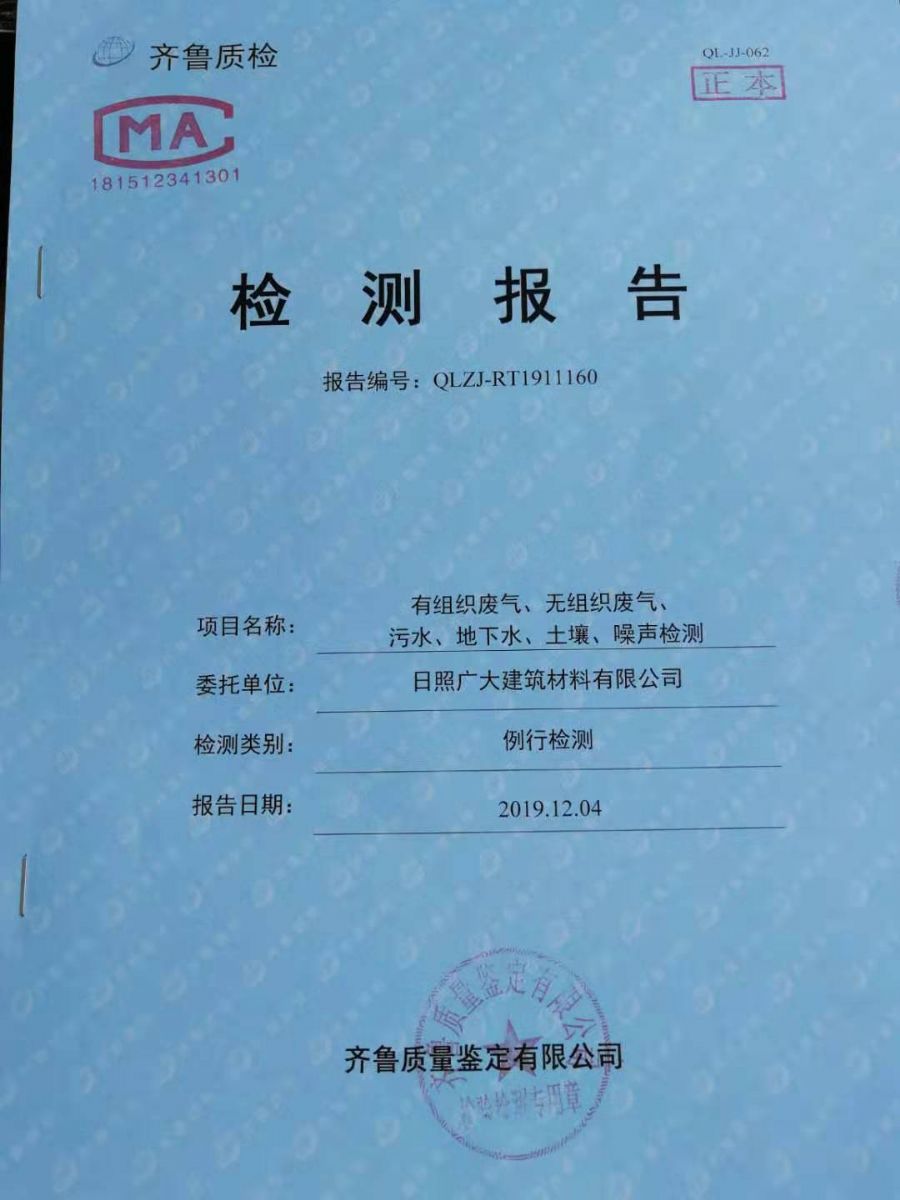 日照廣大建筑材料有限公司2019年第四季度環(huán)境信息公開