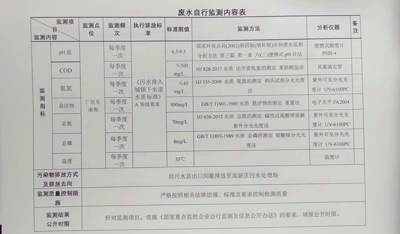 重點監(jiān)控企業(yè)自行監(jiān)測方案
