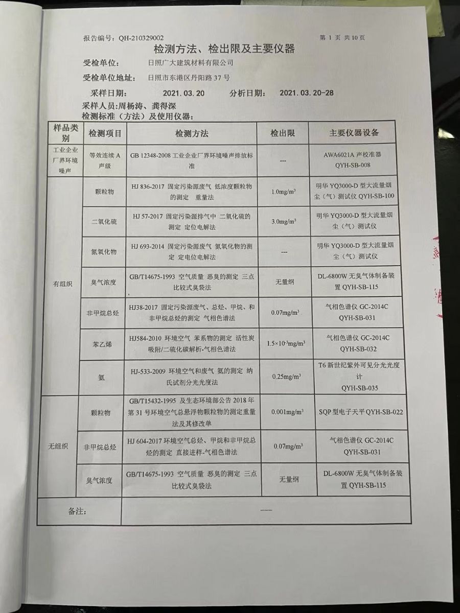 日照廣大建筑材料有限公司2021年第一季度環(huán)境信息公開