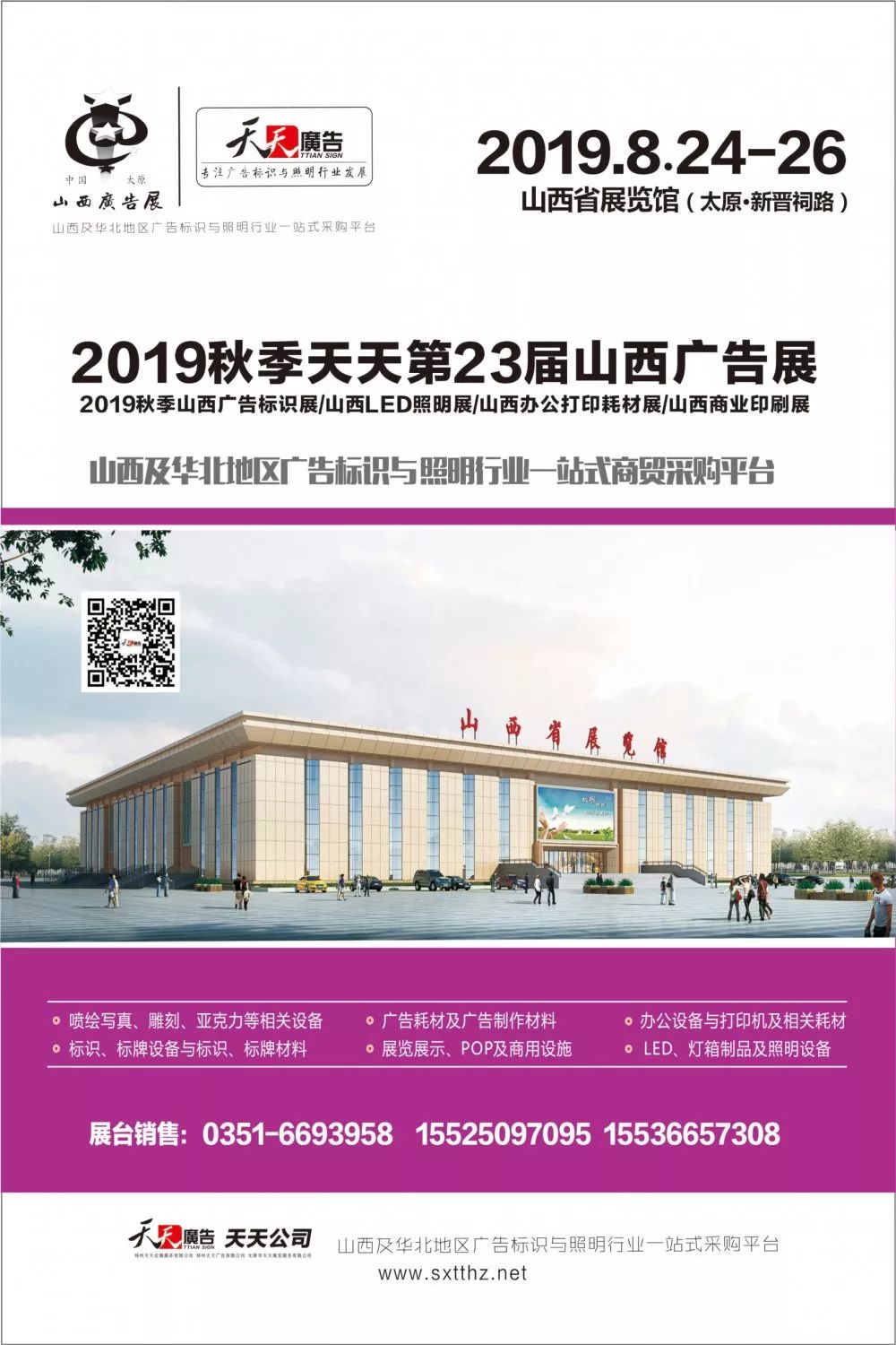 接下來(lái),天天公司繼續(xù)秉持“創(chuàng)造品牌展覽 締造無(wú)限商機(jī)”的辦展理念,為展商和觀眾傾力打造高規(guī)格、大規(guī)模、高品質(zhì)的一站式商貿(mào)平臺(tái)。8月24-26日,我司舉辦的秋季山西廣告展,我們期待與您在太原山西省展覽館(老館)再次相聚!