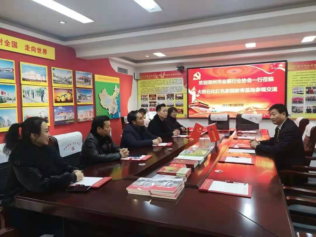 1月20日下午,鄭州天天會(huì)展服務(wù)有限公司副總經(jīng)理、鄭州會(huì)展行業(yè)協(xié)會(huì)常務(wù)副會(huì)長(zhǎng)夏勝齊隨同鄭州會(huì)展行業(yè)協(xié)會(huì)支部委員會(huì)參觀了大橋石化紅色家園。中共鄭州會(huì)展行業(yè)協(xié)會(huì)黨支部書記李秉禹、副書記邵翠平、鄭州會(huì)展行業(yè)協(xié)會(huì)秘書長(zhǎng)劉亞娜、鄭州會(huì)展行業(yè)協(xié)會(huì)常務(wù)副會(huì)長(zhǎng)馬玉群等人共同參加了此次學(xué)習(xí)。河南大橋石化集團(tuán)黨委副書記尤連平、大橋石化黨委副主任申建黨百忙之中,熱情接待并全程陪同。