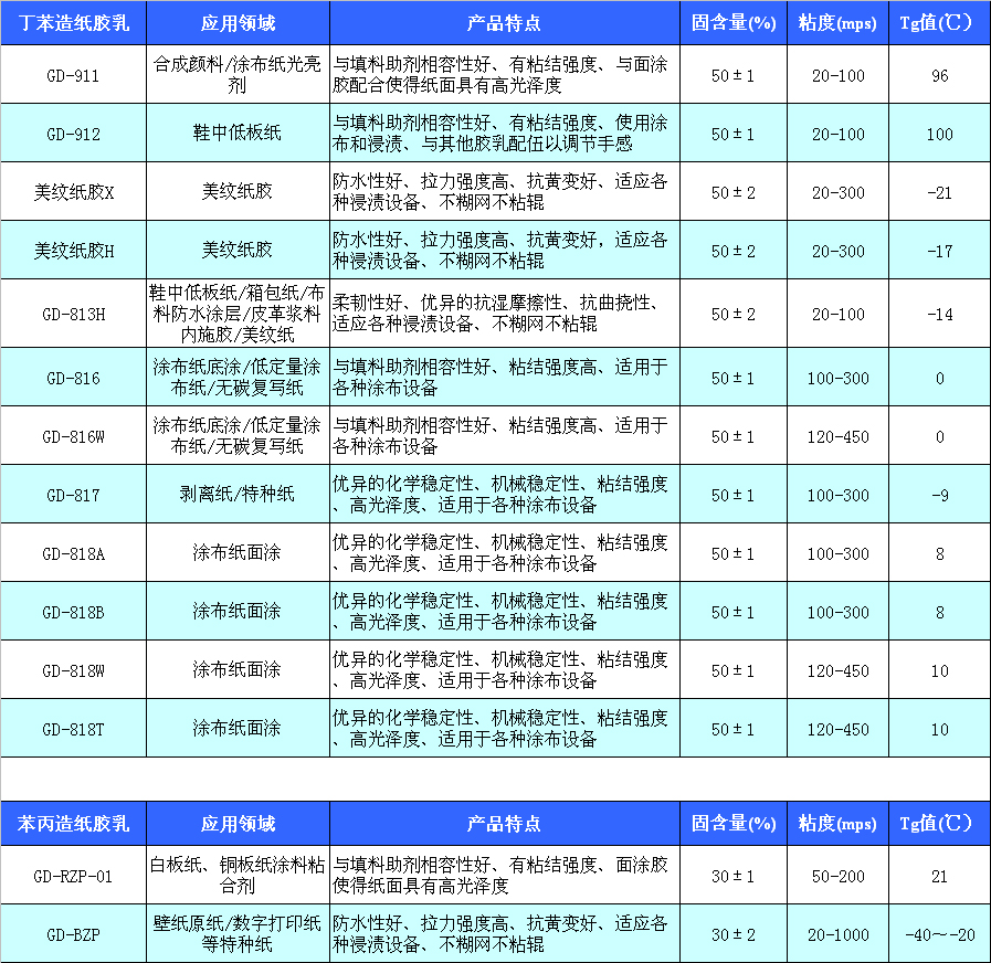 主要產(chǎn)品為丙烯酸脂類乳液和丁苯膠乳。公司擁有現(xiàn)代化的自動生產(chǎn)線和先進的檢測儀器,依靠嚴格的管理、精湛的生產(chǎn)工藝,先后開發(fā)生產(chǎn)出苯丙、純丙、硅丙、醋丙、羧基丁苯、助劑等六大系列三十多個品種的建筑、紙品、地毯、紡織、防水用乳液及助劑,年生產(chǎn)能力達10萬余噸。